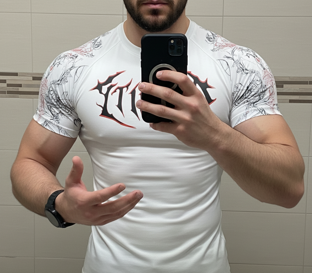 Definition & Komfort ist unsere KOMBINATION. Pralle Look für die Muskeln um allen deine hart Arbeit zu zeigen mit einem ultra bequemen & atmungsaktiven Shirt wie dieses, so etwas findest du kein zweites mal!